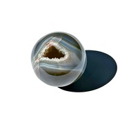 外側は温かみのあるアゲート、内部には透明な結晶が輝くジオードメノウ丸玉。